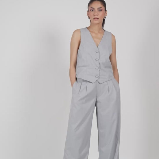 Embrace understated elegance with our Colette Waistcoat, featuring exquisite Kantha stitches in a subtle grey hue. This piece offers a sophisticated tone-on-tone design, perfect for layering. Whether for a formal occasion or a casual look, the Colette adds artistry and showcases artisanal craftsmanship with contemporary style.