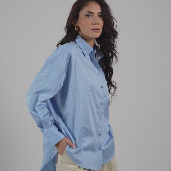 Elevate your style with our unisex Kantha Shirt in a striking staud blue shade, featuring delicate white Kantha embroidery. This oversized fit combines comfort with sophistication, making it a standout addition to any wardrobe. Perfect for those who appreciate artisan-made, one-of-a-kind pieces.